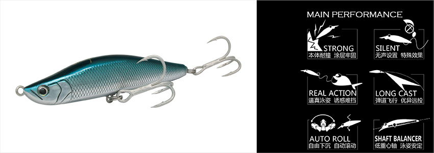 通常情况下,自重比较大的全泳层饵需要相对比较快的速度才能保持在一定的泳层,比如各类大克重的金属饵,必须以高速操控,因此在鱼活性不高的时候,效果有限,而对于翘嘴鲌这类目标鱼,实战中低速操控往往比高速状态更具诱惑性;反之,比重相对轻的全泳层饵,如沉水铅笔,收线速度很慢也能保持一定的泳层,呈现优异的泳姿,这在低水温环境或者目标鱼活性不高时,尤其重要,特别适合翘嘴鲌作钓。