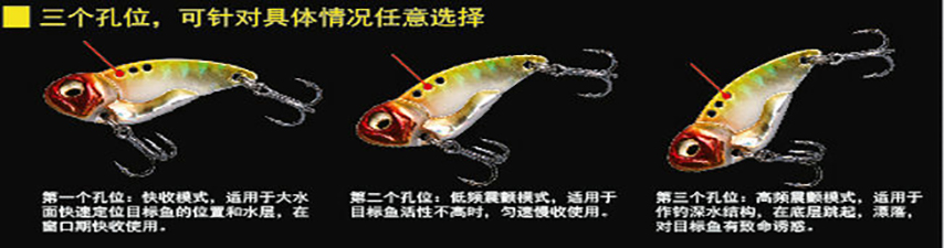 对于颤游也可以在路亚抛出后让其自由下沉至轻轻触底,随后竿尖朝下缓缓收线,水底的路亚似一条无悠无虑觅食的小鱼,随后抬高竿尖,迅速轻轻一抽,路亚就似猛地受惊向上逃窜的小鱼,瞬间就勾起庸懒的猎食者最疯狂的追咬!VIB易挂底,因此钓线建议用2#的PE+5#碳前导,这样挽救的机会比较大。