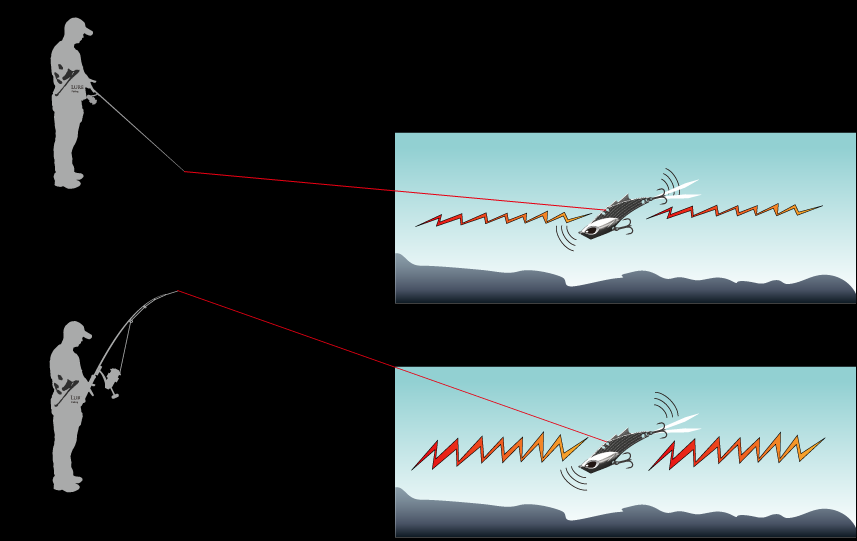 竿尖上举和下指,对于VIB的操控来说你会有明显不同的感觉。上举时,震颤感更加明显,即便慢速收线时也有强烈手感,让你敏锐准确地掌控饵在水下的状态。