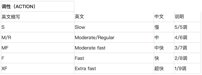 - 路亚竿调性(ACTION)的表示方式: