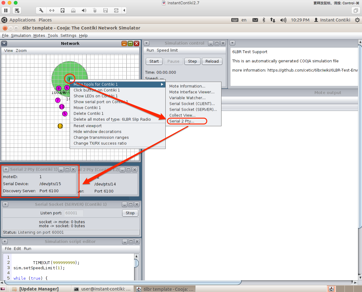 <font style=”font-weight:bold;”color=”red”>警告: 默认Instant Contiki 2.7环境中没有添加serial2pty插件,添加方法是: