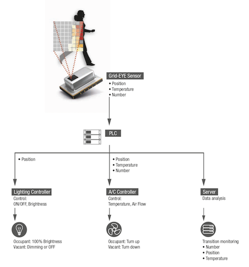美国加州大学的Merced在2013年展示了一款基于Grid-EYE传感器的系统,用于估算即时进入信息,使他们能够基于房间进入人员的数量调整房间利用,从而有效的维持房间的温度,通过这一方法每年能够节约25%的能源。