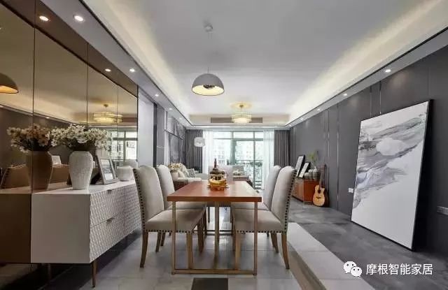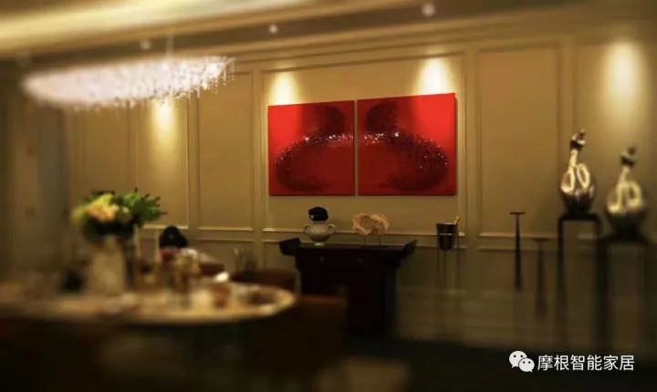 餐厅是最需要调光的,摩根可以通过全宅调光,增加空间的个性,突出食物的美味,打造一个光线柔和的空间。我们去高档餐厅吃饭,会发现里面的灯光都不会很亮,给人一种温馨,舒适的感觉。如果对餐厅做了调光的话,我们在家就可以享受到高档餐厅才有的灯光环境氛围。当节假日,比如情人节、结婚纪念日,生日,吃西餐时,我们把餐厅的灯光调至50%、10%,就可以打造出烛光晚餐的效果,这是一件多么浪漫的事情啊。