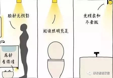 卫生间别看面积不大,里面的灯光可是大有名堂。卫生间的灯光设置不合理,在镜子前人脸会出现阴影,不利于化妆、刮胡子等脸部清洁活动。