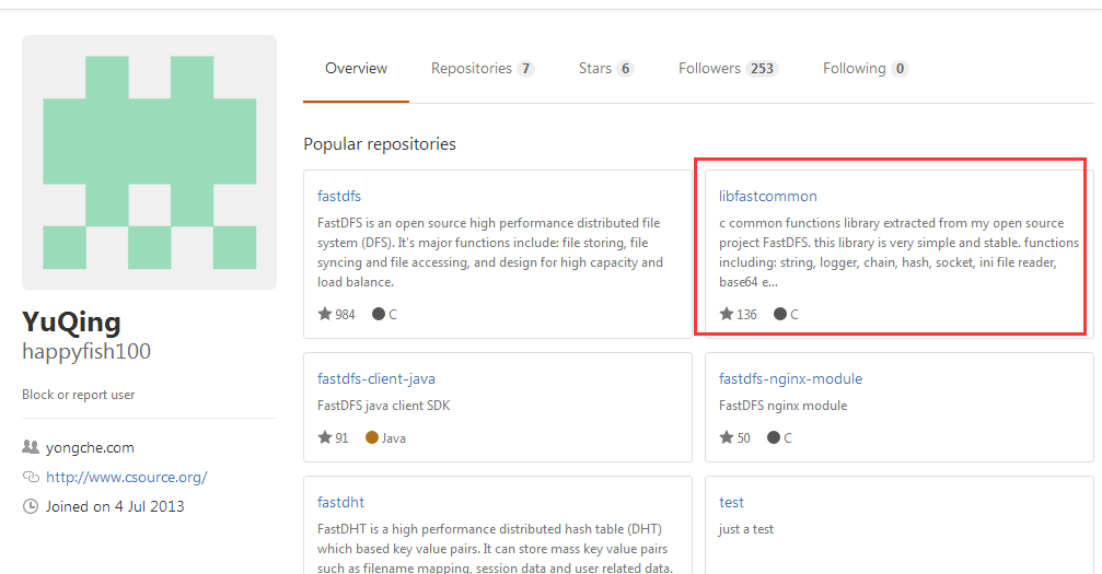 如上图,由于FastDFS是纯C语言实现,只支持Linux、FreeBSD等UNIX系统,所以我们直接下载tar.gz的压缩包,同时FastDFS 5.11同以前版本相比将公共的一些函数等单独封装成了libfastcommon包,所以在安装FastDFS之前我们还必须安装libfastcommon,在余的GitHub首页可以看到: