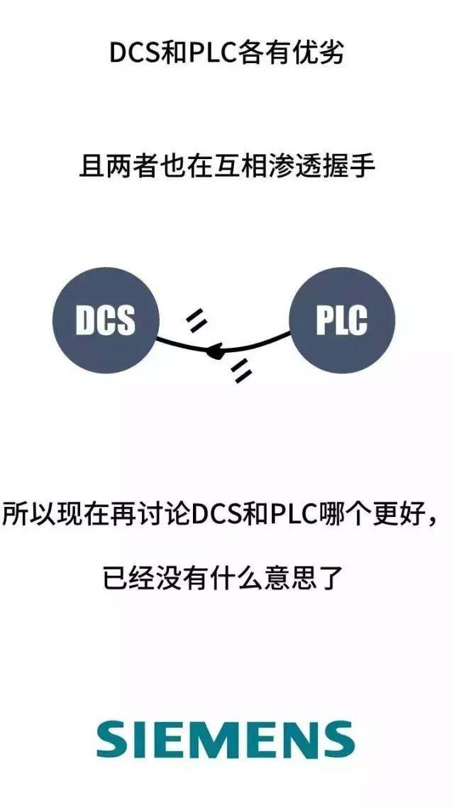 说了这么多PLC与DCS的区别,但我们应该认识到,PLC与DCS发展到今天,事实上都在向彼此靠拢,严格的说,现在的PLC与DCS已经不能一刀切开,很多时候之间的概念已经模糊了。