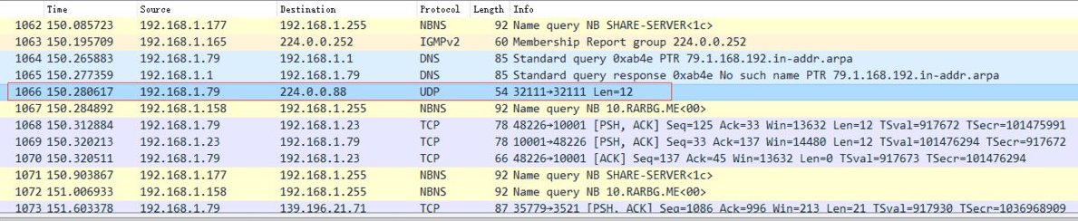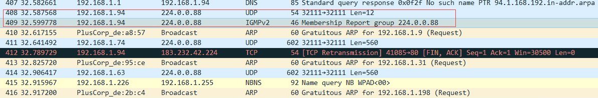 1.能正常发送接收的安卓平板,向组播地址发送了组播消息后,同时会向组播地址发送一个 IGMPv2 的协议