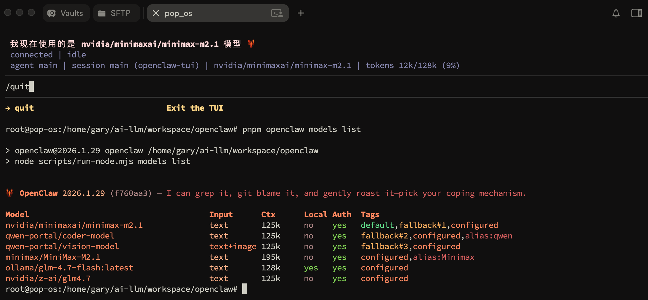 1 | openclaw models set nvidia/minimaxai/minimax-m2.1 |